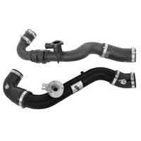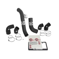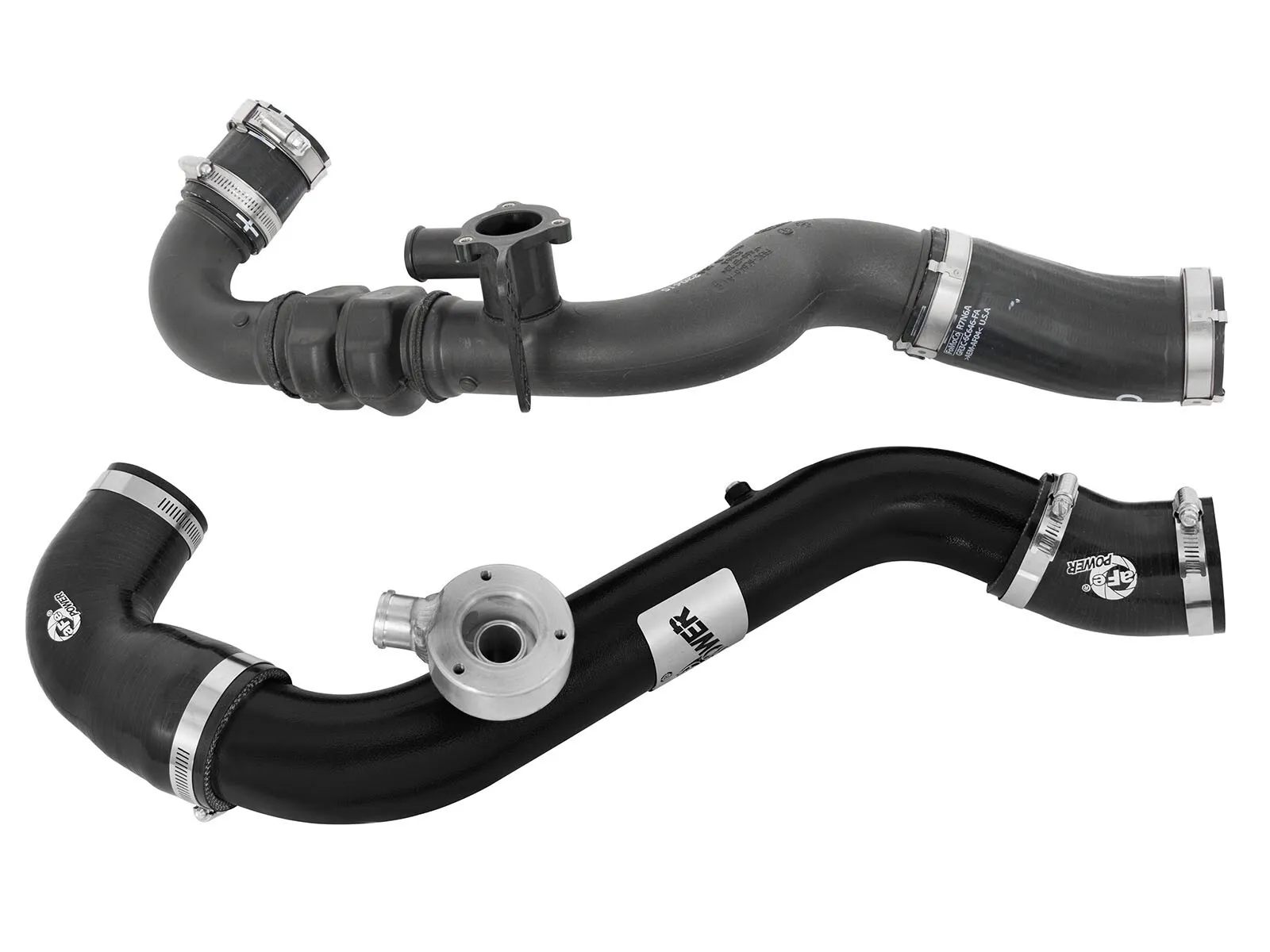 Flow and Performance: aFe POWER's intercooler tubes are constructed from 2-1/2" (Hot Side) and 3" (Cold Side) mandrel-bent aluminum tubing for maximum flow then, powder-coated for a nice finish. The high-temp wrinkle-black powder-coating also insulates the tubes from engine heat and protects the tube from corrosion. The smooth transition bends decrease turbulence, minimize pressure loss, while increasing horsepower and torque. Also included is one 1/8" NPT port on each tube which is provided for a sensor or water-methanol injection.