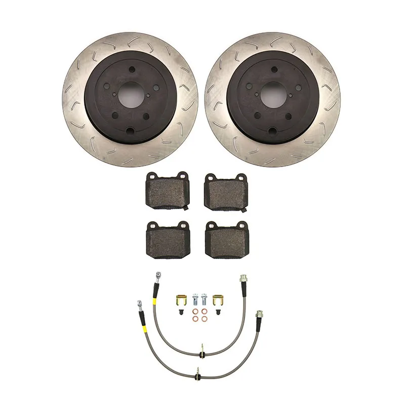 This kit includes new rotors, brake pads, and stainless steel brake lines to improve the braking performance of your vehicle.