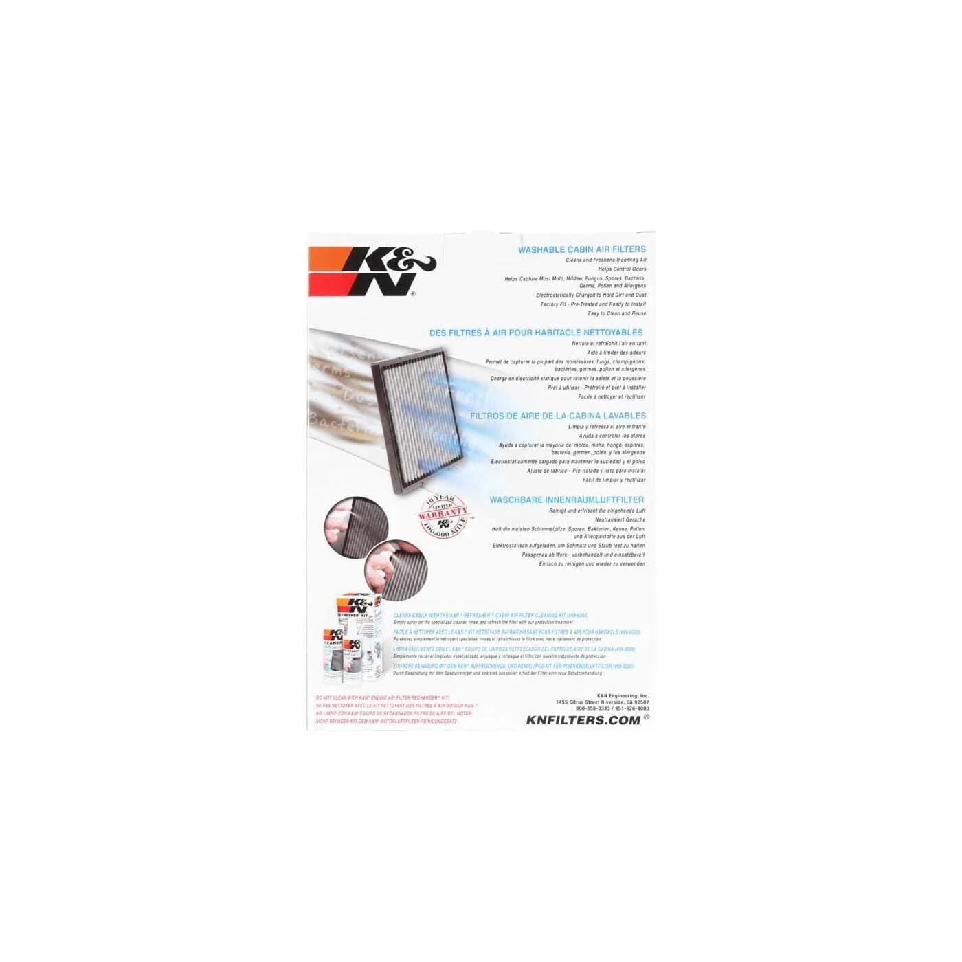K&N® washable cabin air filters are engineered to fit directly into your factory air box, offering excellent protection from environmental contaminants and odor-causing particles. The thermally bonded high-flow synthetic material acts as a physical barrier, helping trap dust, pollen, mold, bacteria, fungi, and other pollutants, and is specially pleated to increase the contaminant-capturing surface area. Each filter is engineered to install easily into your factory cabin air box, and is designed to be easily washed and reinstalled whenever necessary. Buy with confidence under the K&N® 10-Year/Million Mile Limited Warranty™.