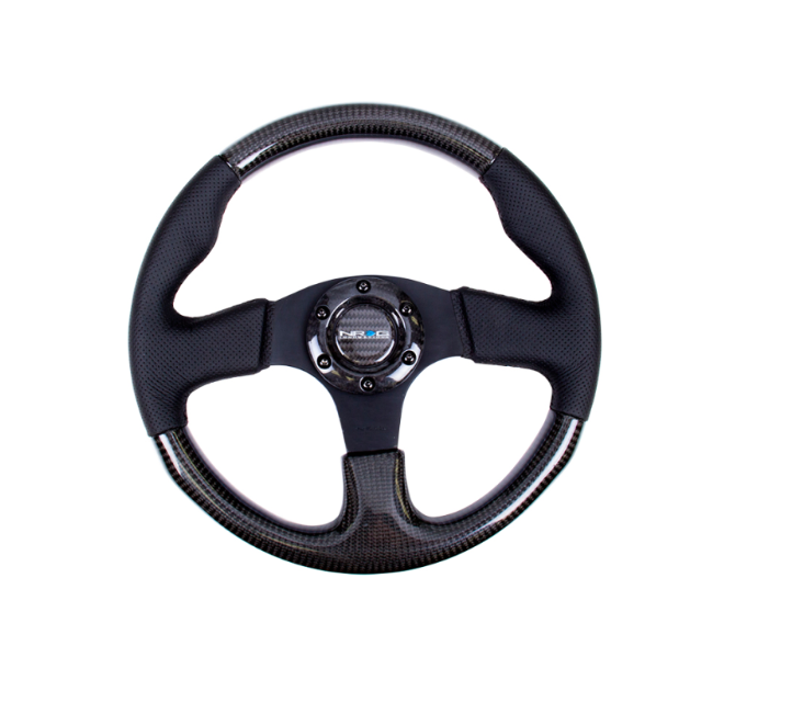 On this page, you are looking at another fine example of a steering wheel from NRG's Carbon Fiber Series Steering Wheel line. This particular steering wheel features beautiful carbon fiber construction combined with leather.