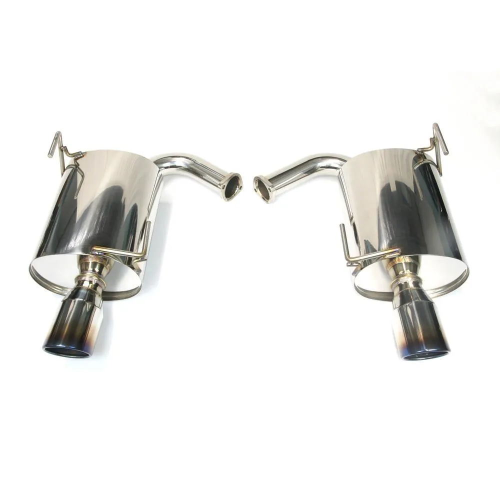 Hyperflow Exhaust is proud to release the newly redesigned Subaru 2010-2011 FXT Cat-back exhaust featuring the Dual Tip Touring Catback Exhaust System. The exhaust is a completely new redesign of our original system. It has been designed around our brand new Touring Muffler. The Touring Muffler features our new Volume Tone Reduction (VTR) specification. The VTR specification maintains and enhances the exhaust tones you love but while eliminating the rasp and drone you hate in a performance exhaust system. These new mufflers maintain a straight-through design that aids in exhaust gas flow and maximum power potential but keep sound pressure levels reasonable at idle and while cruising. We achieved this by more than DOUBLING the internal volume of each muffler compared to our previous WRX Sedan mufflers and by utilizing a propriety quantity and blend of packing material in each muffler. The overall result has to be heard to be believed - enjoyable melodic tones of the Flat 4 Boxer engine at idle and cruise with none of the rasp and drone that can detrimental to the driving experience.