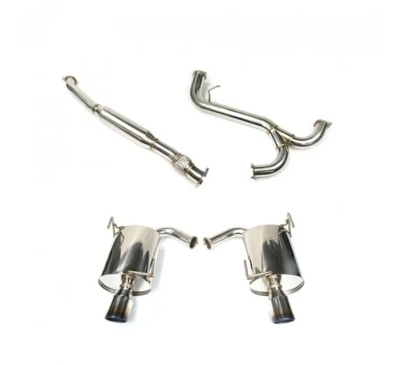 The rest of the exhaust system consists of a 3 inch in to dual 2.5 inch out Y-Pipe with free flowing mandrel bends that are aesthetically pleasing and also disperse exhaust gases efficiently. The design keeps excellent clearance to any moving parts including larger aftermarket sway bars and sway bar braces. A 3 inch midpipe with flex section and resonator complete the system and connect to your stock or aftermarket downpipe. Like all Hyperflow Exhaust exhausts, all piping, flanges, and mufflers are made from T304 stainless steel, TIG welded with precision, and all have a show quality finish.