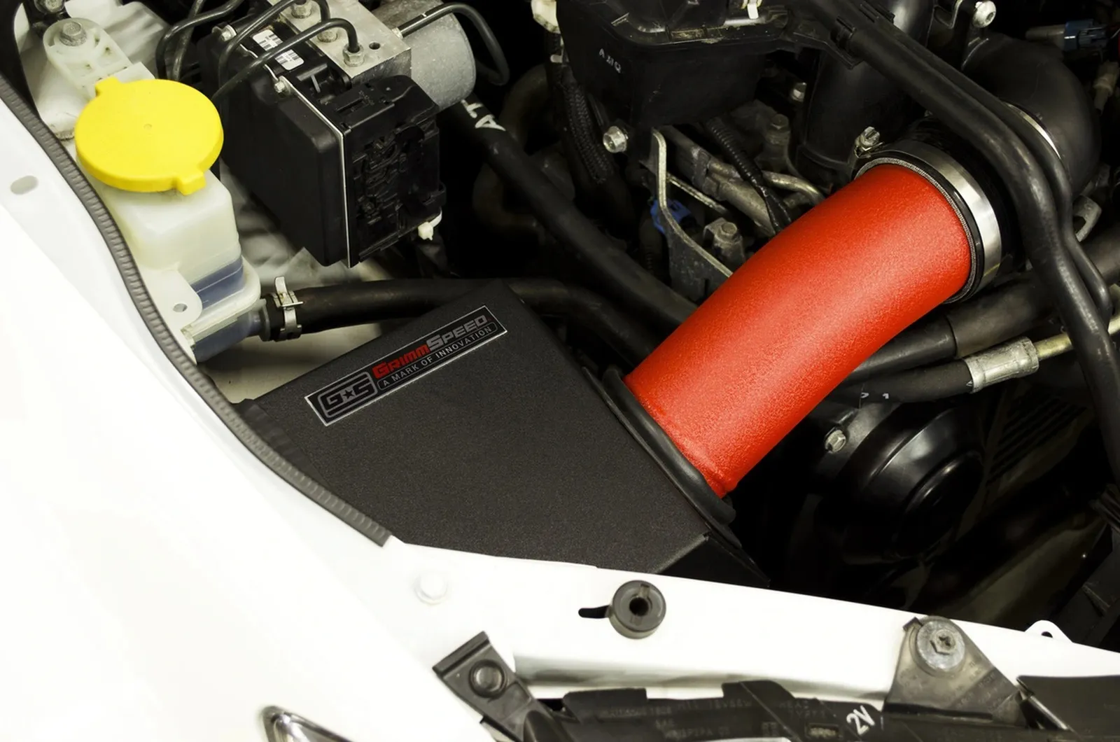 In true GrimmSpeed fashion, no corners were cut in the fabrication of each and every one of these intakes. The aluminum heat shield is laser cut, CNC bent and riveted together before receiving a heavy duty black texture powdercoat. MAF flanges are CNC machined from 6061 aluminum and the intake tube is fabricated from custom bent tubing, made specifically for our application, to provide the perfect MAF diameter. The air straightener is laser cut from the same 6061 material and tumbled before the entire assembly is TIG welded by our expert welders. After welding, each tube receives the same heavy duty powdercoat and is inspected and cleaned to ensure maximum performance and reliability.