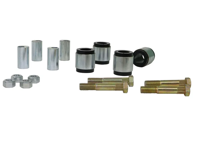 Worn front control arm bushings have a huge influence on vehicle stability, steering precision and braking efficiency. Replace worn bushings to as new condition utilising Whiteline's advanced synthetic elastomer bushings with core characteristics ensuring superior elasticity, memory and outright durability for all forms of driving applications.
