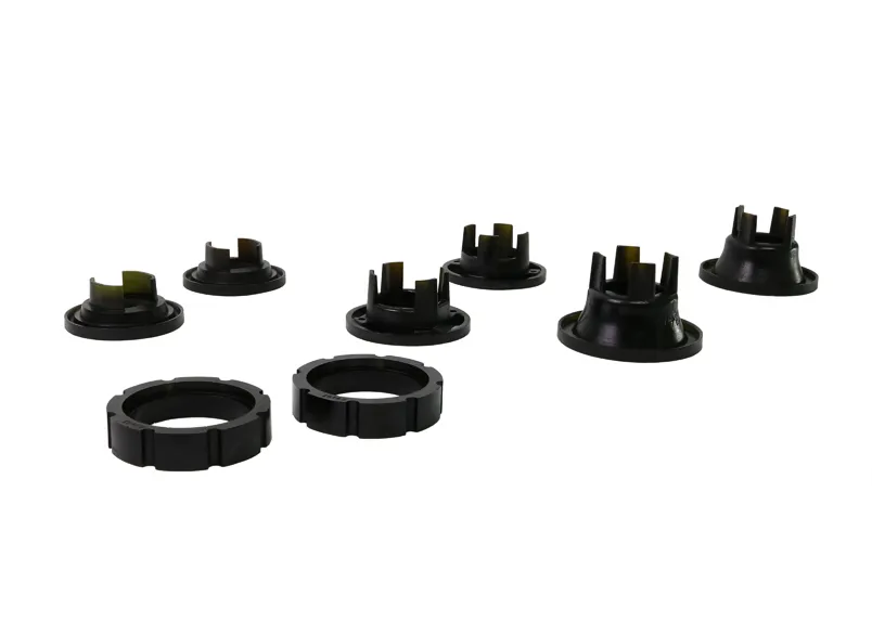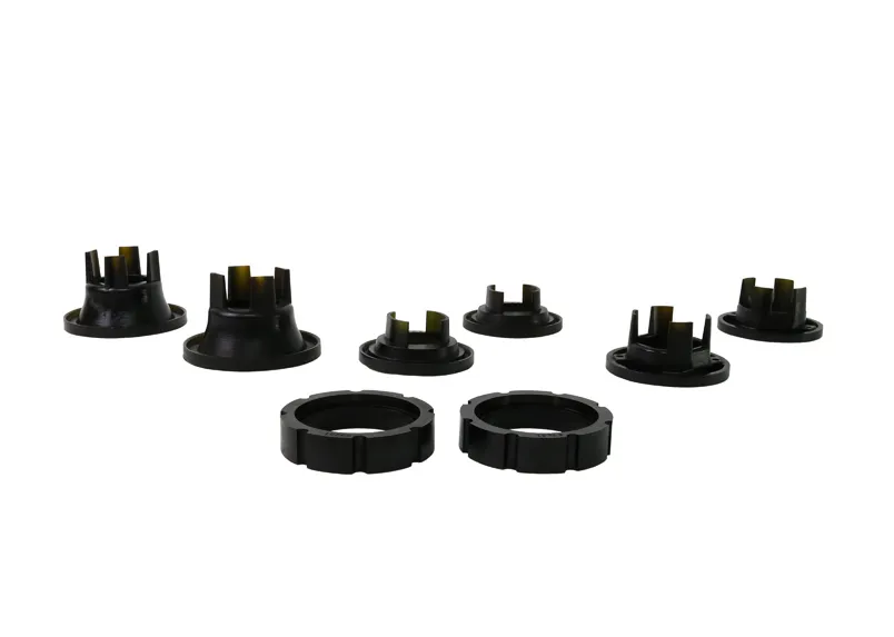 Not your typical remove and replace bushing kit but simple installation means great for the DIYer's. Designed to work with the original bushing and eliminate over compliance or better known in motorsport as 'lost motion' of the rear crossmember. W93194 dramatically reduces rear cross member misalignment and movement which allows a more positive feel from the rear end during cornering.