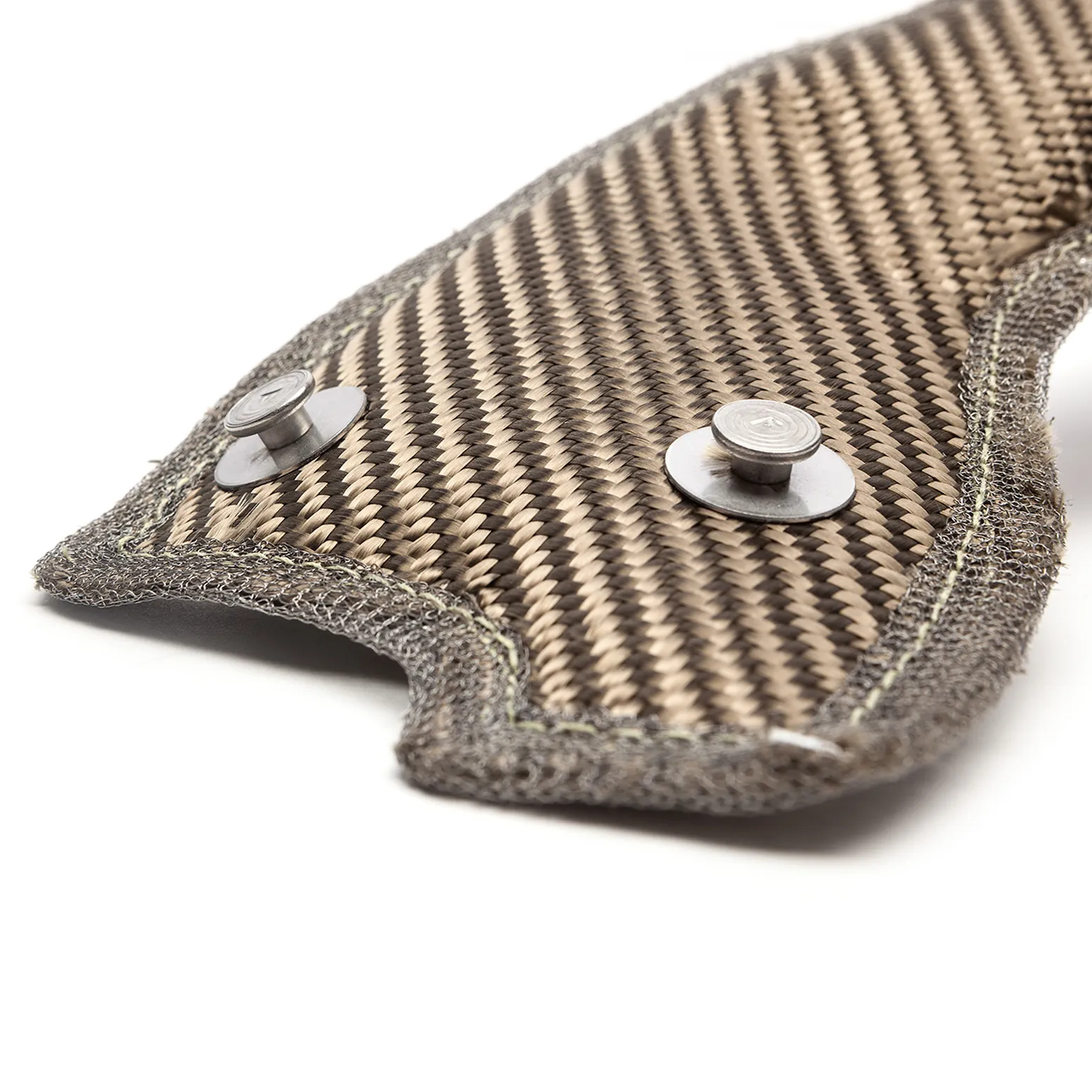 The COBB Turbo Blanket is designed to limit the amount of heat that is transferred from your turbocharger to your engine bay as well as keeping hotter exhaust gases that exit the system faster through decreased density. By limiting the amount of transferred heat, you extend the life of your under hood components, decrease intake temps, and improve the response from your car. Constructed with a fragmentized fire retardant volcanic rock outer layer (Rated 1500?F Direct Heat / 1800?F Radiant Heat) and internally insulated with high temperature calcium magnesium silicate wool (Rated 1800?F Direct Heat / 2300?F Peak Heat).