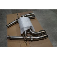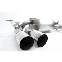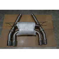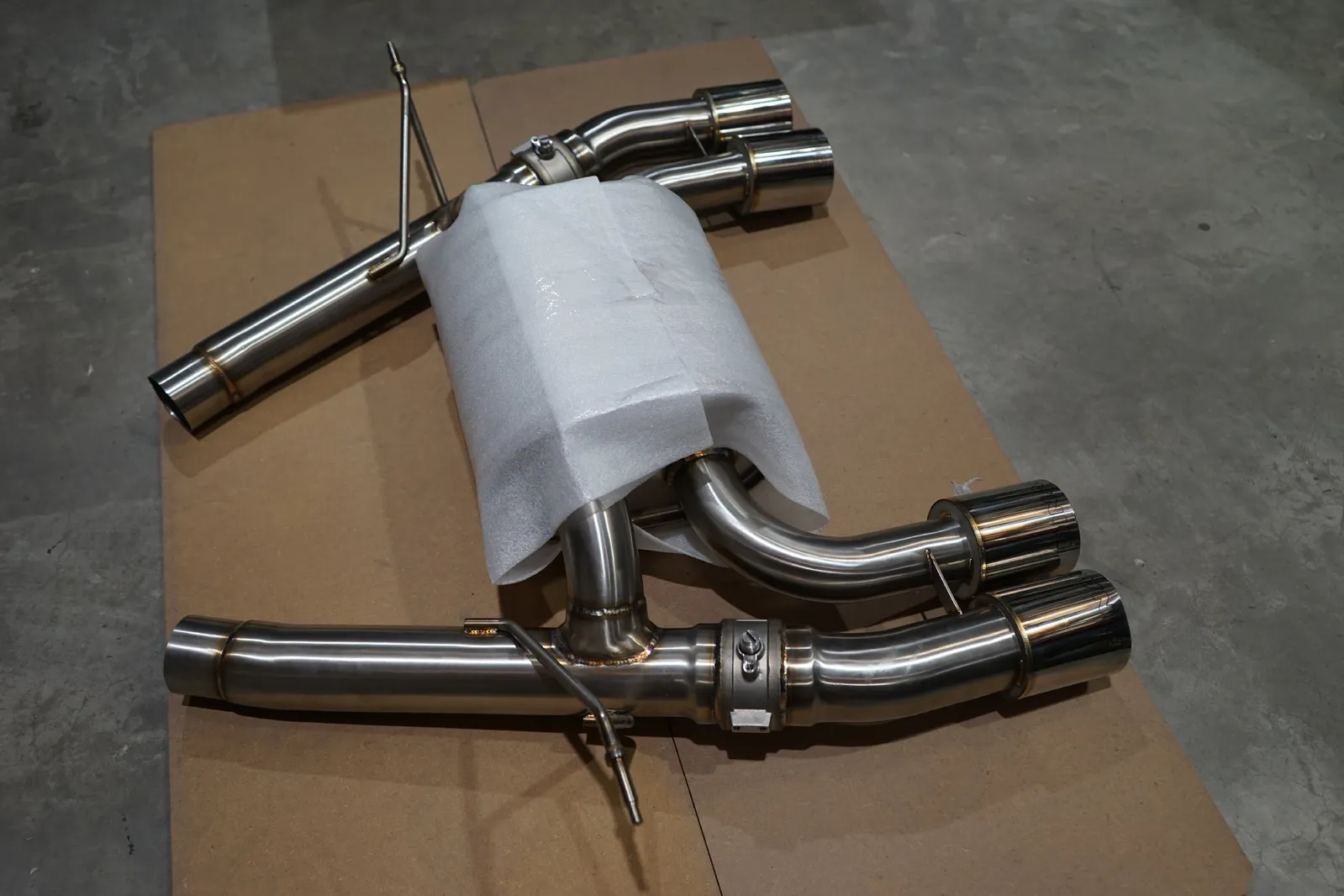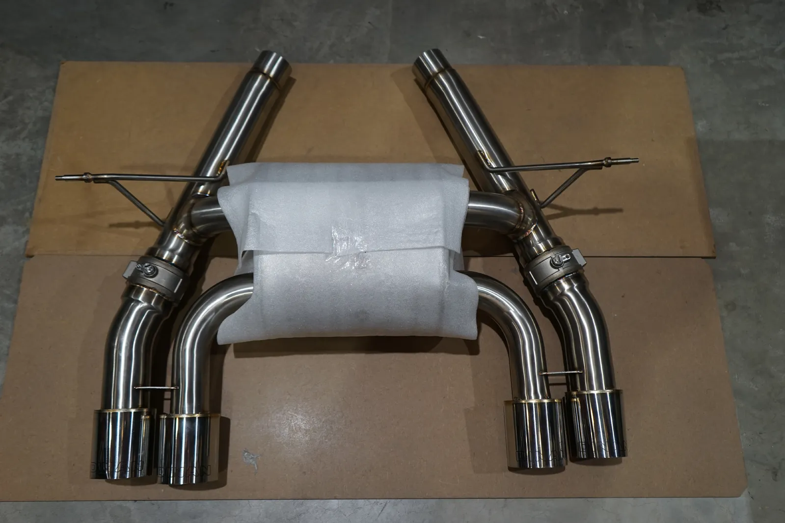 Dinan's Free Flow axle-back exhaust system features 100% stainless steel construction measured to exact specifications to ensure proper fit via factory hangers and mounting points. Dyno tuned for maximum exhaust flow with minimum backpressure, this system is designed to provide a more aggressive sound under acceleration, while reducing drone inside the vehicle, thanks to computer-controlled valves that limit noise during low-speed driving and open fully during high-load conditions to allow free flow. The exhaust gasses exit through larger laser engraved polished, or ceramic black, quad tips.