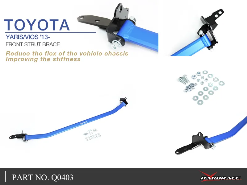 Hardrace chassis braces are designed to stiffen up the chassis and reduce vehicle chassis flex. This Increases the rigidity of your car during high speed driving and hard cornering. Hardrace chassis braces maximizes the performance of the suspension and brings better driver feeling with quicker steering response.