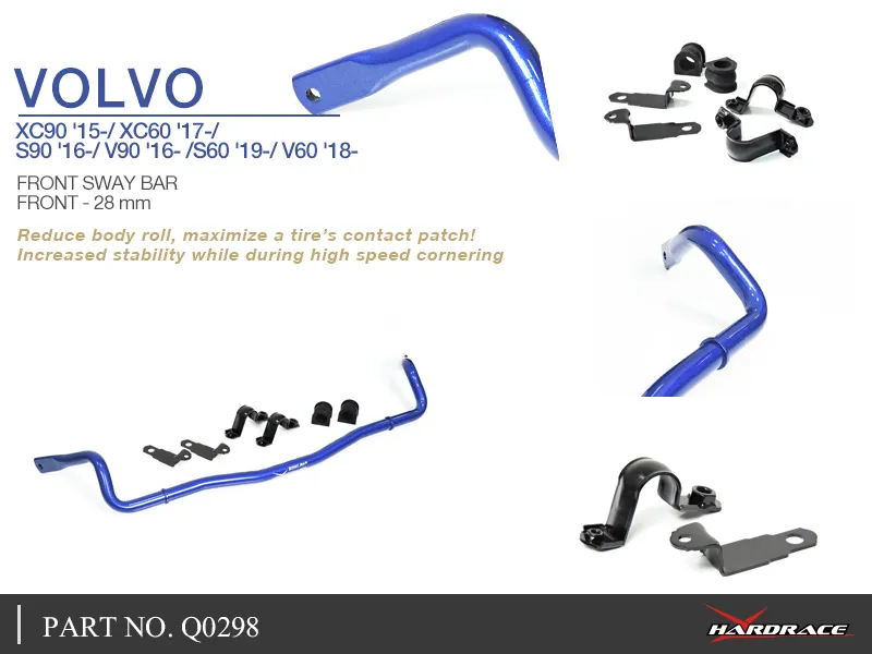 Hardrace sway bar positively effects the handling and the car's stability during cornering to counter over-steer and under-steer. It ties the Lower suspension links together across the Front or back, will keep your car flat in turns instead of leaning over to one side. Hardrace sway bars provide better control especially at high speed cornering.