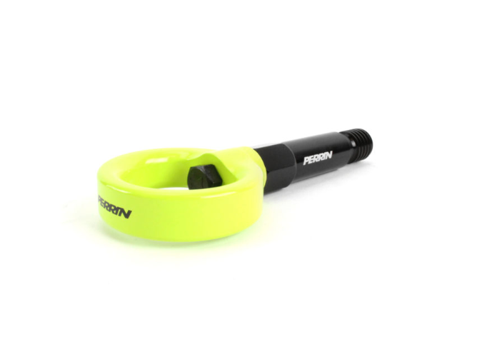 Here, you are looking at the racing inspired PERRIN front tow hook. It mounts directly to your existing OEM tow hook opening and is powder coated for protection from the elements. The neon yellow tow hook will accent your show car and will look awesome for years to come.