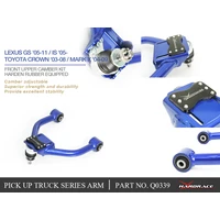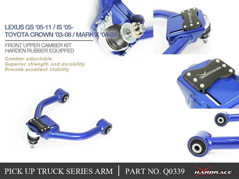 Hardrace camber kits reduce tire wear and Increase handling performance. Our camber kits are made with high quality carbon steel and are acompained with our long life, high performance hardened rubber Bushing which provide advanced stability and accurate steering response, especially during high speed driving and cornering.