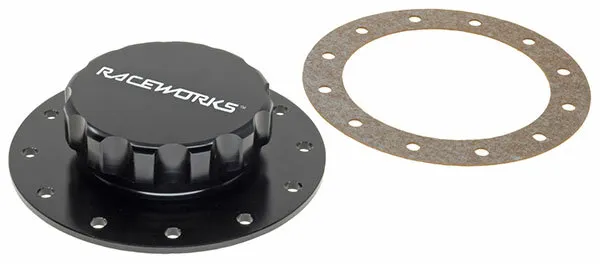 Raceworks Gen2 Screw On Fuel Cell Filler Cap – Black. Gen2 model with larger 12x140mm bolt pattern. O-Ring seal, no longer cork.