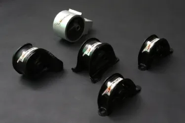 Hardrace reinforced hardened rubber engine mounts provide more strength than OE rubber mounts. Harden rubber mounts reduce engine movement significantly, providing the maximum output under engine acceleration.