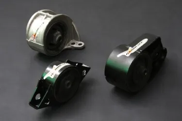 Hardrace reinforced hardened rubber engine mounts provide more strength than OE rubber mounts. Harden rubber mounts reduce engine movement significantly, providing the maximum output under engine acceleration.