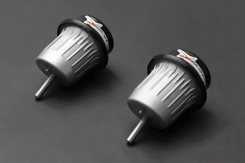 Hardrace reinforced hardened rubber engine mounts provide more strength than OE rubber mounts. Harden rubber mounts reduce engine movement significantly, providing the maximum output under engine acceleration.
