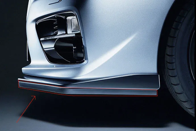 For installment on STI front under spoiler. Installed on the end of the bottom of the front under spoiler, this part reduces the Clf / Cd while also ensuring protection and giving the vehicle a stylish appearance. Made from hardened rubber.