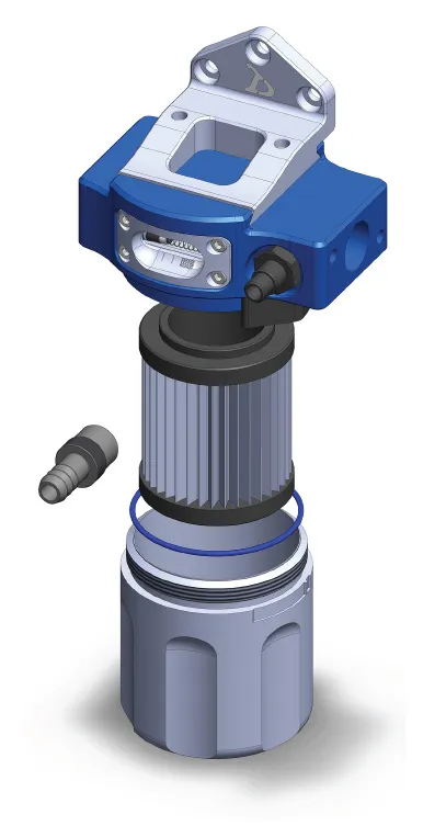 Delta P is short for delta pressure, which is the difference in pressure between two points. In this case, those two points are the inlet and outlet of the filter. The Delta P indicator gives a visual indication of the condition of the serviceable filter element, so that it can be replaced before it becomes a problem.