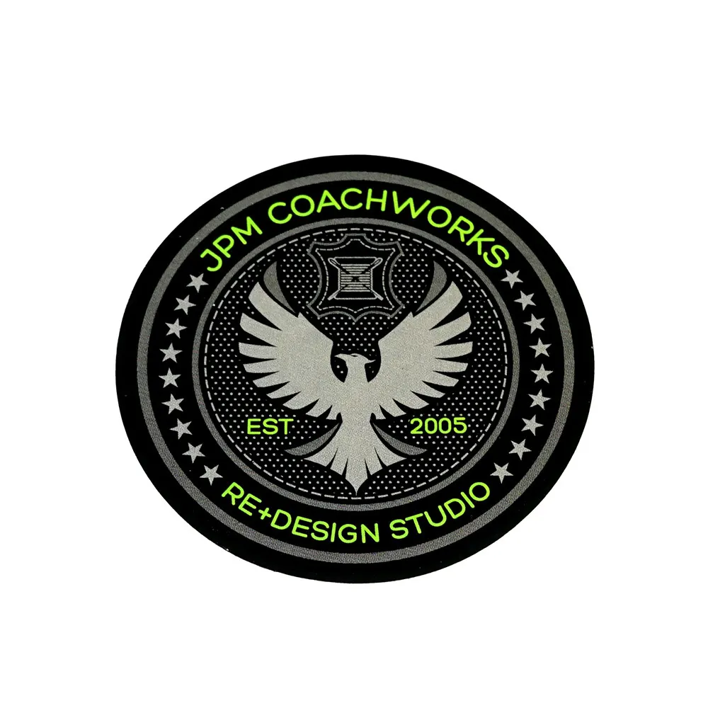 JPM Coachworks RE+Design Studio sticker. 7.5cm diameter.