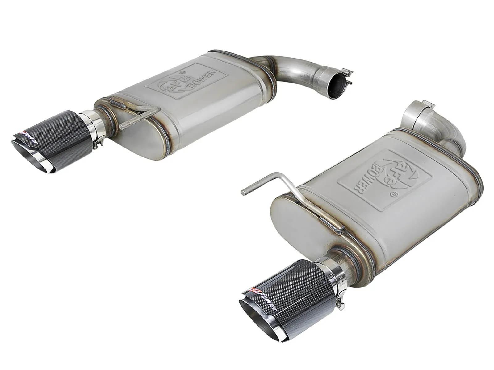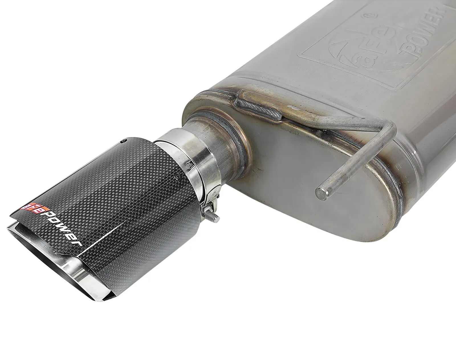 Dual 4" Carbon Fiber Tips: Finishing off this axle-back exhaust system are 4" diameter dual wall, carbon fiber, stainless steel tips sporting the aFe POWER logo for a custom, stylish look.
