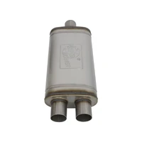 Muffler Specifications: 2.5" Center Inlet /2.5" Dual Outlets, 18"L x 9"W x 4"H Body Diameter.