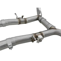 Integrated Mitered Merge X-Pipe: A mitered merge x-pipe is used to balance and evenly distribute exhaust pulses traveling through the exhaust system, minimizing exhaust drone and maximizing scavenging.