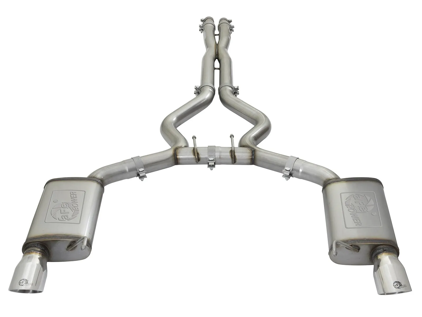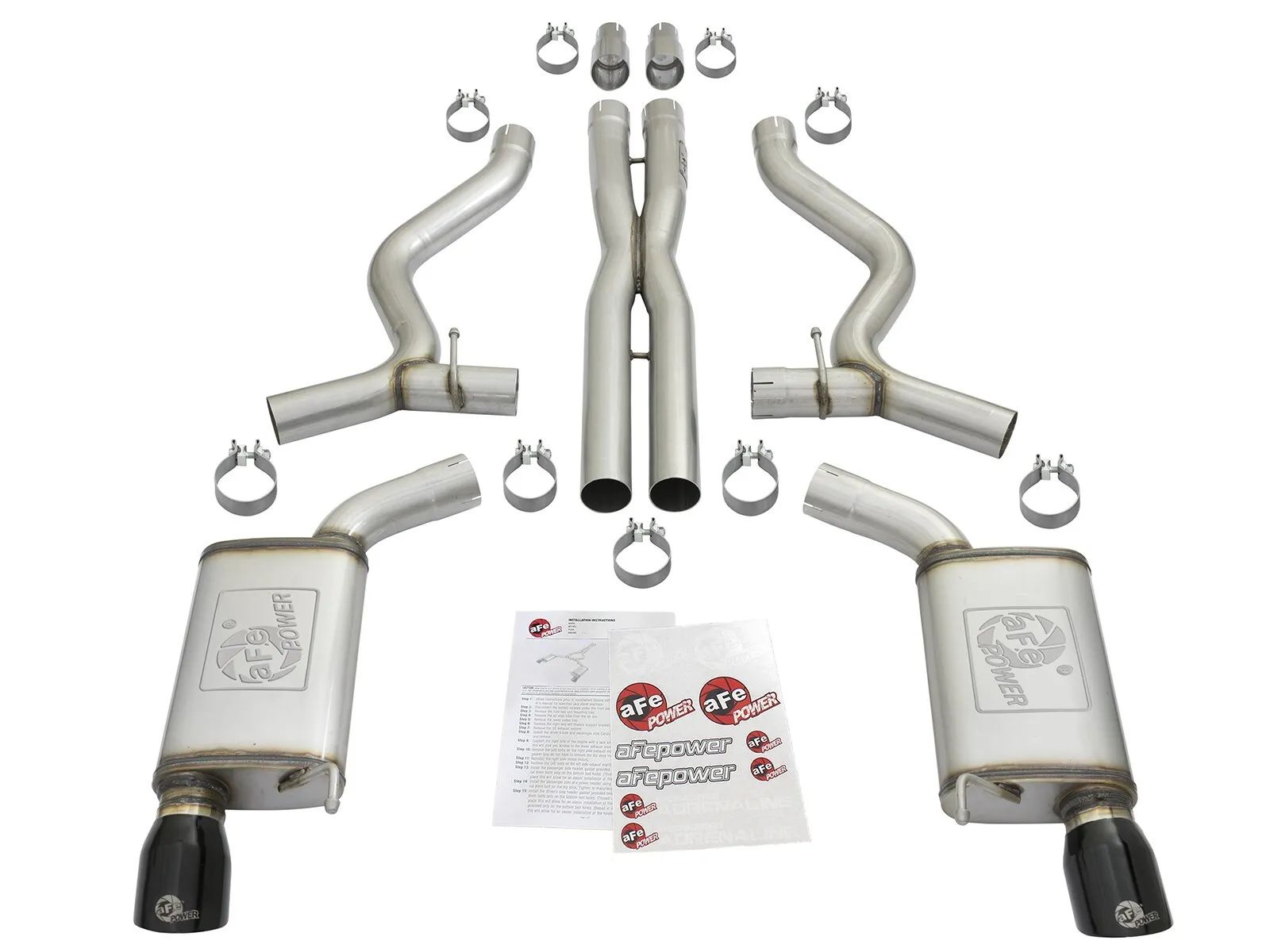 Dual 304 SS Tips: Finishing off this unique exhaust system are dual, aFe laser etched, 4" polished 304 stainless steel tips for an aggressive style.