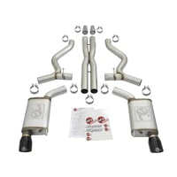 aFe is proud to introduce an all new Mach Force-Xp cat-back exhaust system for the 2015-2017 Ford Mustang with the V8-5.0L engine. In testing, this system resulted in gains up to +11 horsepower and +14 lbs. x ft. of torque verified by our in house dyno. This cat-back exhaust system utilizes full 3" tubing with reduction tubes to fit the OE connections. Remove them and combine with the aFe POWER Twisted Steel Long tube headers and connection pipes (P/N: 48-33012-YC) for added flow and performance.This system incorporates dual, high-flow mufflers to improve performance across the power band while maintaining an aggressive sound. aFe also added an X-pipe to balance and evenly distribute exhaust pulses traveling through the exhaust system, creating more efficient flow and better performance while minimizing exhaust drone resulting in an awesome sound. To finish off the exhaust, dual 4" high-luster polished 304 stainless steel tips are included. This is a direct bolt-on system no modifications necessary and includes all necessary hardware for a hassle-free installation.
