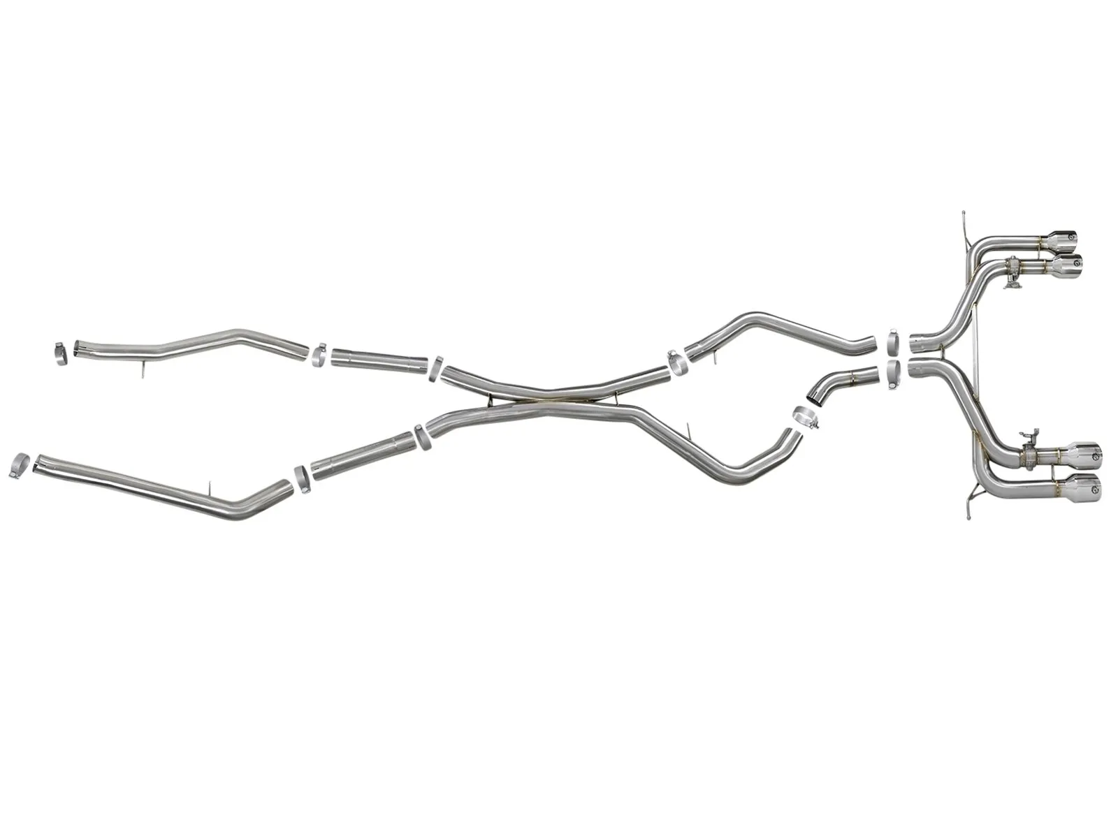 True Quad 3 1/2" Polished Stainless Steel Exhaust Tips: Finishing off this system are quad 3 1/2" diameter polished stainless steel exhaust tips. Laser-etched with aFe POWER logo for a custom, stylish finish.