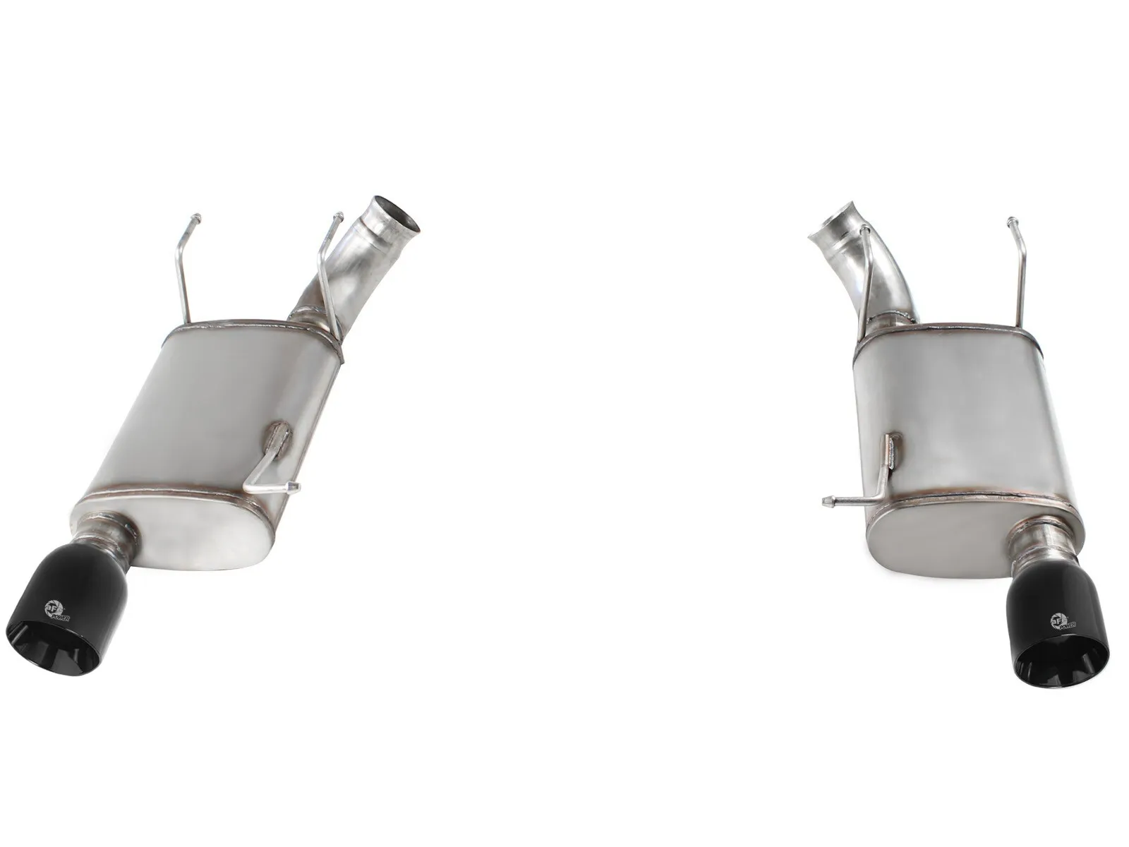 aFe introduces the MACH Force XP dual axle-back exhaust system for the 11-14 Mustang GT V8-5.0L. In recent testing this system produced 18 horsepower and 15 lbs. x ft. of torque. This exhaust is constructed from 3", mandrel-bent, stainless steel and is MIG-welded. The system uses high-flow, stainless steel mufflers which improves performance across the power band while maintaining a great tone. To finish off this exhaust are dual, gloss black, 4" double wall, 304 stainless steel aFe laser etched tips. This exhaust uses all factory hanger locations for a hassle-free installation. No modifications necessary.