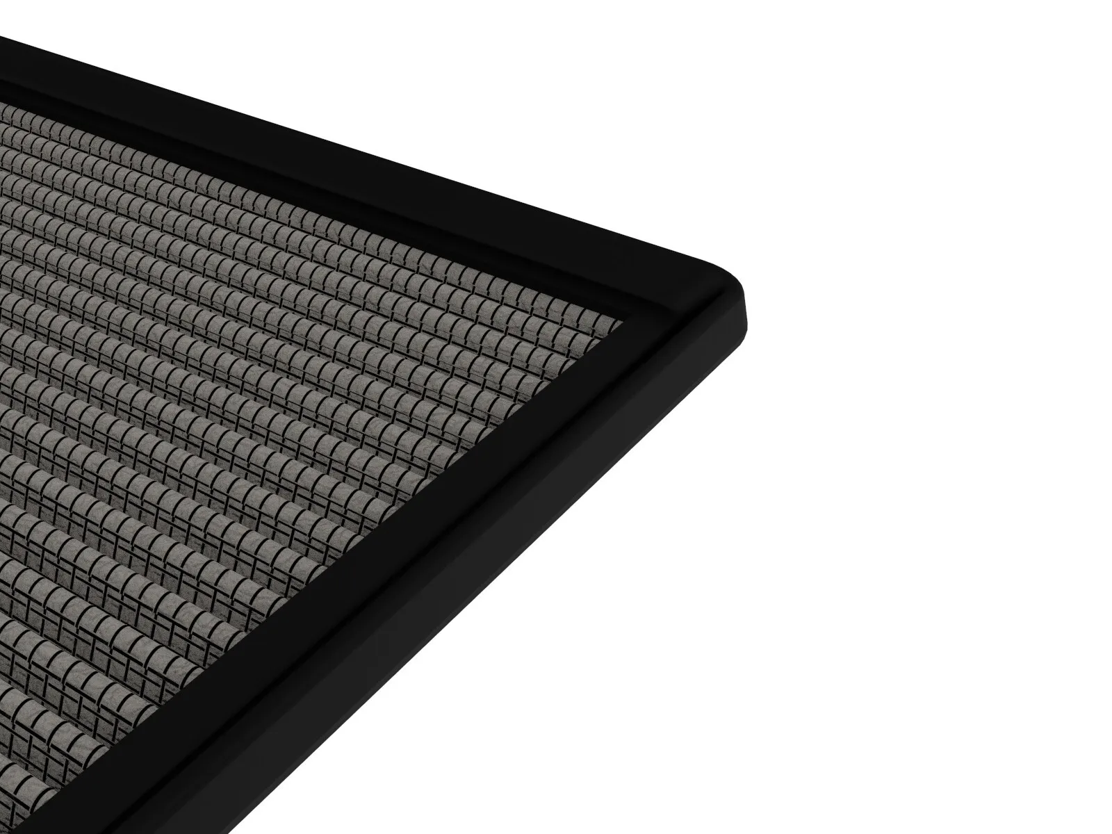 Full Polyurethane Frame: All aFe POWER flat panel performance air filters are constructed with a full 360-degree polyurethane frame. Unlike other materials that degrade after repeated heat cycles in an engine bay, polyurethane maintains its original molded shape.