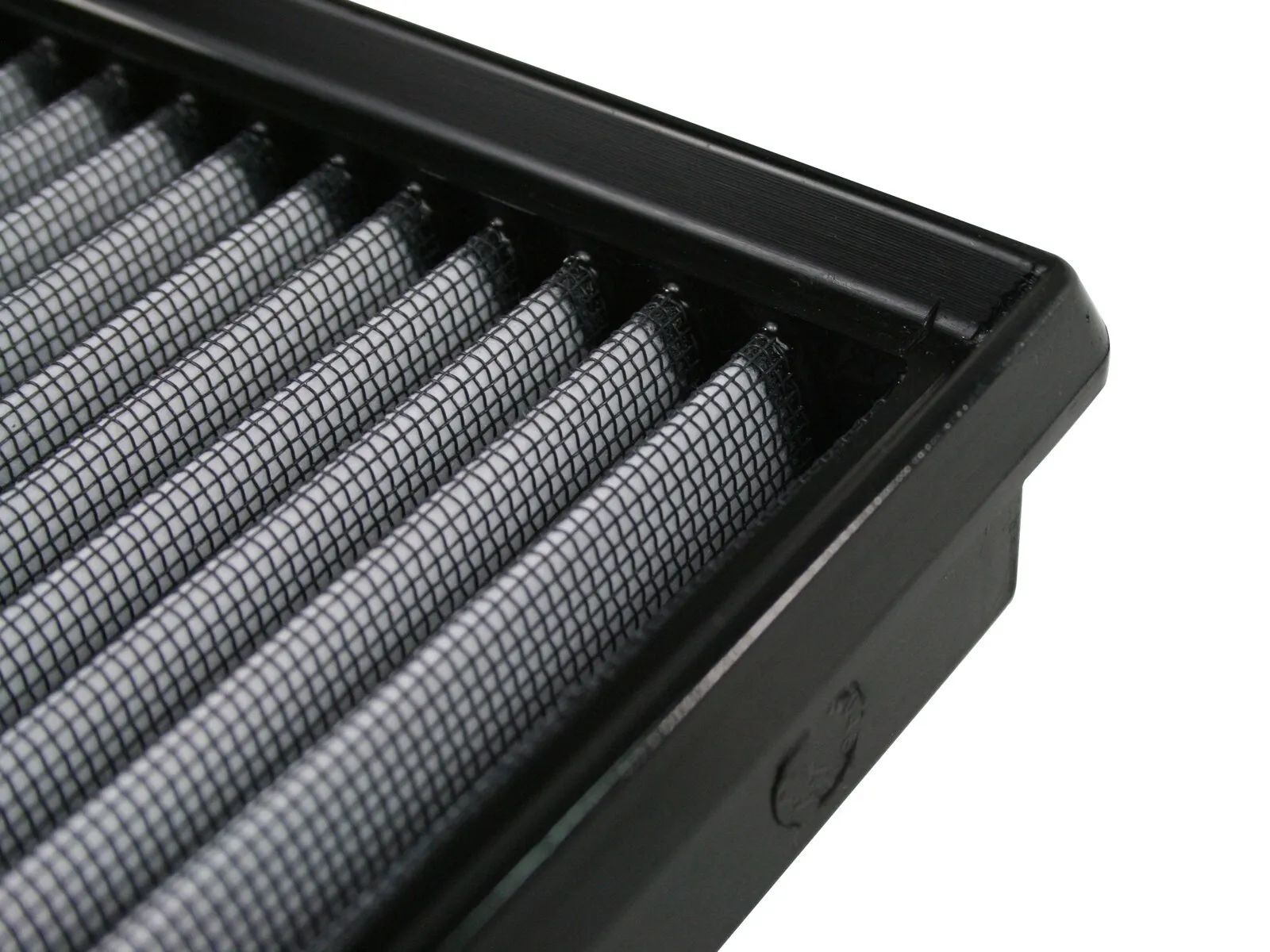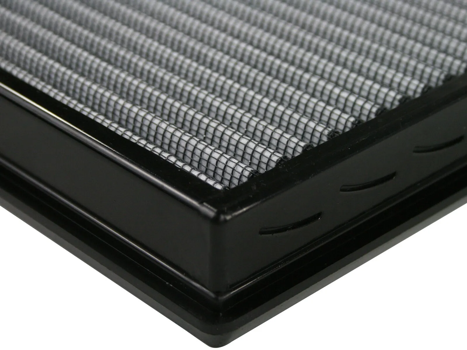 Pro DRY S Media: This filter features 3-layers of progressive media to provide maximum flow with excellent filtration. The progressive layering of media allows the filter to flow at high levels even when dirty. The Pro DRY S non-oiled synthetic air filter requires no oils for cleaning for maximum convenience. Rounded Open Pleats: aFe performance air filters use a rounded pleat design which produces more useable filter surface area for increased flow and greater dust holding capacity. Progressive Bump Seal: This pliable sealing surface conforms to even the most uneven filter housing. This design eliminates the use of gaskets or sealants. The soft urethane construction always goes back to its original form so you will never compress the bump seal. This makes for a perfect filter fit and sealing surface every time. Full Urethane Housing: aFe POWER performance air filters are constructed using full 360 degree urethane frames. This construction allows for a proper OE style fit with excellent filter strength. aFe POWER OE replacement performance filters have a limited lifetime warranty.