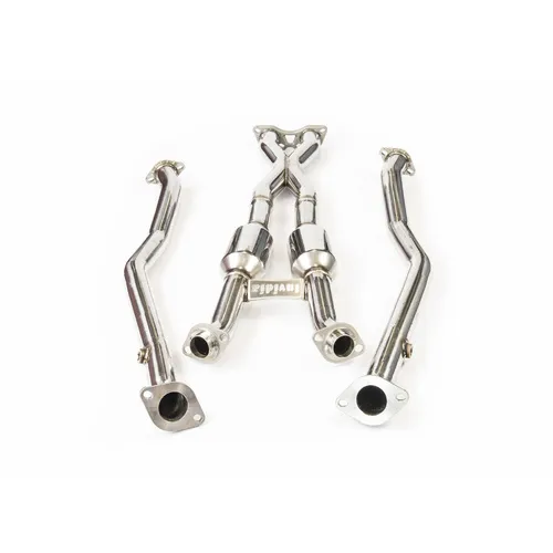 When it comes to modifying and exhaust system to increase power, maximizing flow and reducing restriction is key. The mid pipe is yet another component that can be replaced to meet this end. The mid pipe is found somewhere after the exhaust headers and before the muffler depending on the vehicle and its replacement is often overlooked by enthusiasts. Like any other exhaust component reducing restriction, minimizing bends, and increasing flow are all crucial elements to increasing horsepower. Invidia developes each of their midpipes specificly for each vehicle to ensure proper fitment. Invidia midpipes are constructed from stainless steel and feature a polished finish.