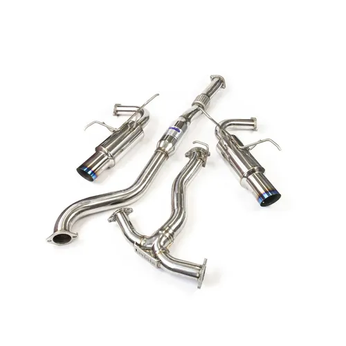 • Cat-Back Exhaust: 1.5mm thick, 76mm diameter, mandrel bent T304 Stainless Steel piping - greatly reduces the risk of cracks and breaks developing, reduces rasp and vibration.Cannon style Muffler - Optimal flow with minimal backpressureCNC Machined Flanges - precision fitment and durabilityRobotic welded - Fantastic appearance and uniform strength101mm Diameter Titanium burned tips for aggressive look Down-Pipe: Mandrel bent for optimum flowHigh grade 304 stainless steelLaser cut turbo mounting flangeHigh Flow catalytic converterStock mounting points and O2 sensor locationsDirect fitGaskets, nuts and bolts includedLifetime warranty