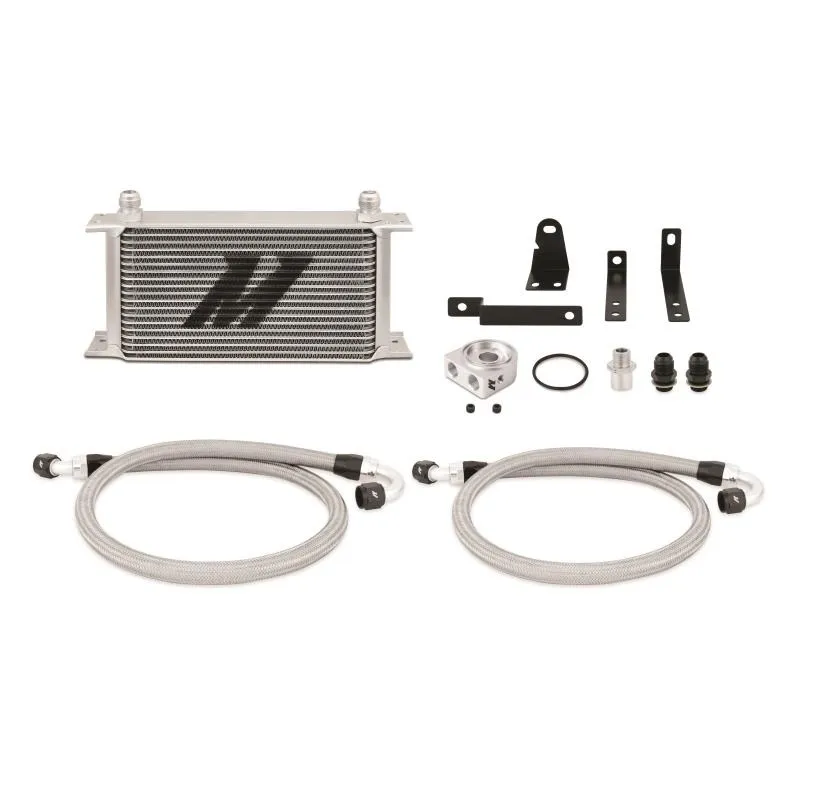 Whether you are carving corners with the top down or blasting down the drag strip, your high-revving S2000 needs a reliable and effective cooling system. Mishimoto is proud to release an all-new, direct-fit oil cooler kit engineered and designed specifically for the AP1 and AP2 Honda S2000. This kit utilizes a large 19-row oil cooler mounted in the front grill for optimum airflow and cooling capability. It includes preassembled stainless steel lines and S2000 specific mounting brackets for a painless and clean installation. The Mishimoto oil cooler kit increases overall oil capacity by .6 qt and significantly reduces temperatures while maintaining minimal pressure drop. This kit is available with a thermostatic sandwich plate for additional oil-temperature control, and your choice of a stealth black or silver cooler. As with all our products, this kit includes the Mishimoto Lifetime Warranty
