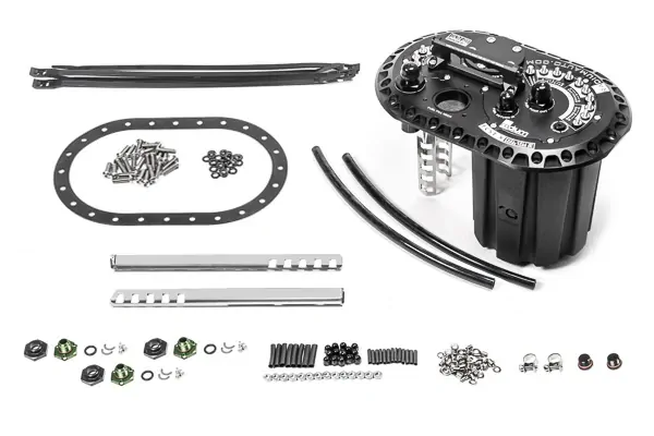 Since 2010, external Radium Engineering fuel surge tanks have been an excellent way to eliminate fuel starvation that occurs in racing. To simplify plumbing and packaging, Radium Engineering introduced the first to market Fuel Cell Surge Tank (FCST) in 2013. The current generation of the FCST is still a great cost-efficient solution. This FCST quickly became the preferred fuel system for the competition vehicle market and professional racing. After 10 years of kaizen, the transformation brings the release of the FCST-X (Fuel Cell Surge Tank-10 Years).