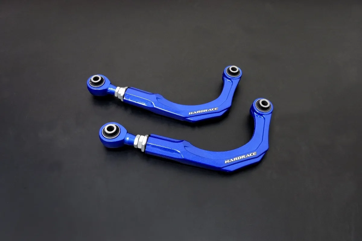 Hardrace camber kits reduce tire wear and Increase handling performance. Our camber kits are made with high quality carbon steel and are acompained with our long life, high performance hardened rubber Bushing which provide advanced stability and accurate steering response, especially during high speed driving and cornering.