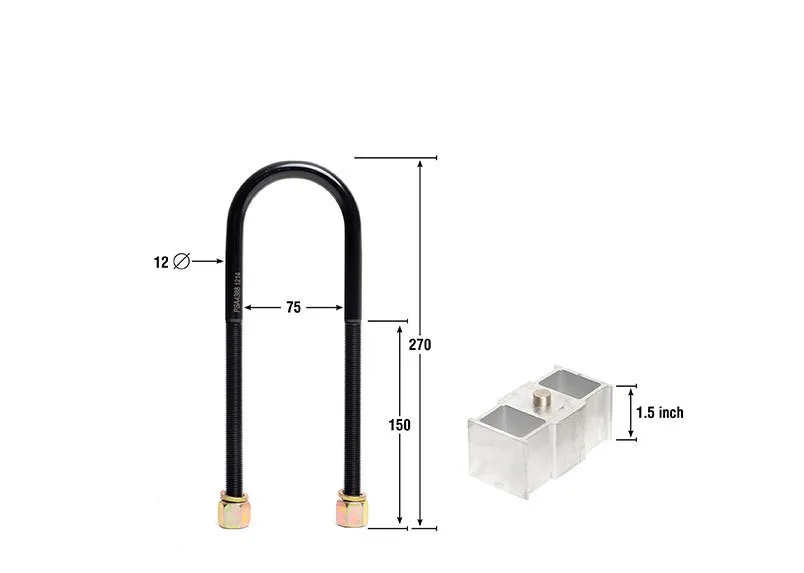 Kit Contents:  2 Blocks, 4 U-Bolts, 4 Washers, 4 Nuts, Install Guide