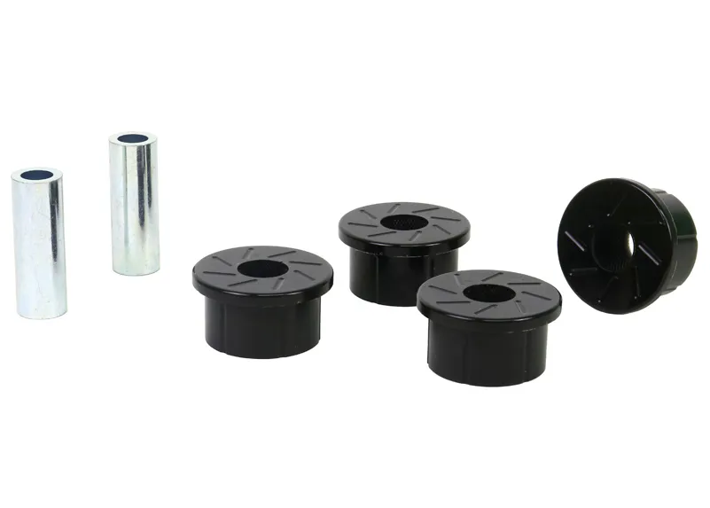 A critical service item for any leaf sprung vehicle. High kilometres and heavy load carrying causes excessive wear on rubber bushings. Whiteline's signature black bushings are made tough and offer outstanding abrasion resistance, high load bearing capability (4WD's, utes and towing), flexibility, increased tensile strength and chemical resistance to oil, grease, ozone and weathering.