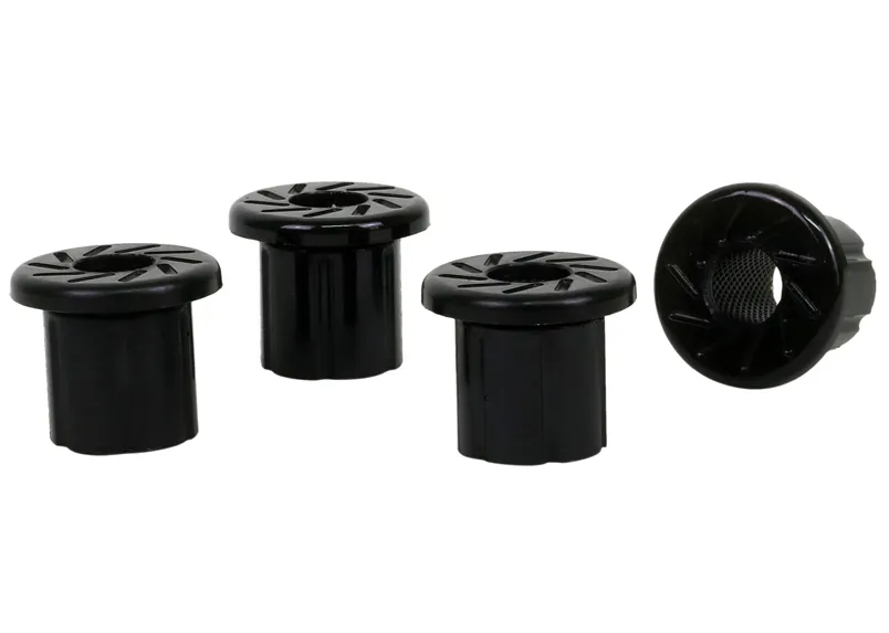 A critical service item for any leaf sprung vehicle. High kilometres and heavy load carrying causes excessive wear on rubber bushings. Whiteline's signature black bushings are made tough and offer outstanding abrasion resistance, high load bearing capability (4WD's, utes and towing), flexibility, increased tensile strength and chemical resistance to oil, grease, ozone and weathering.