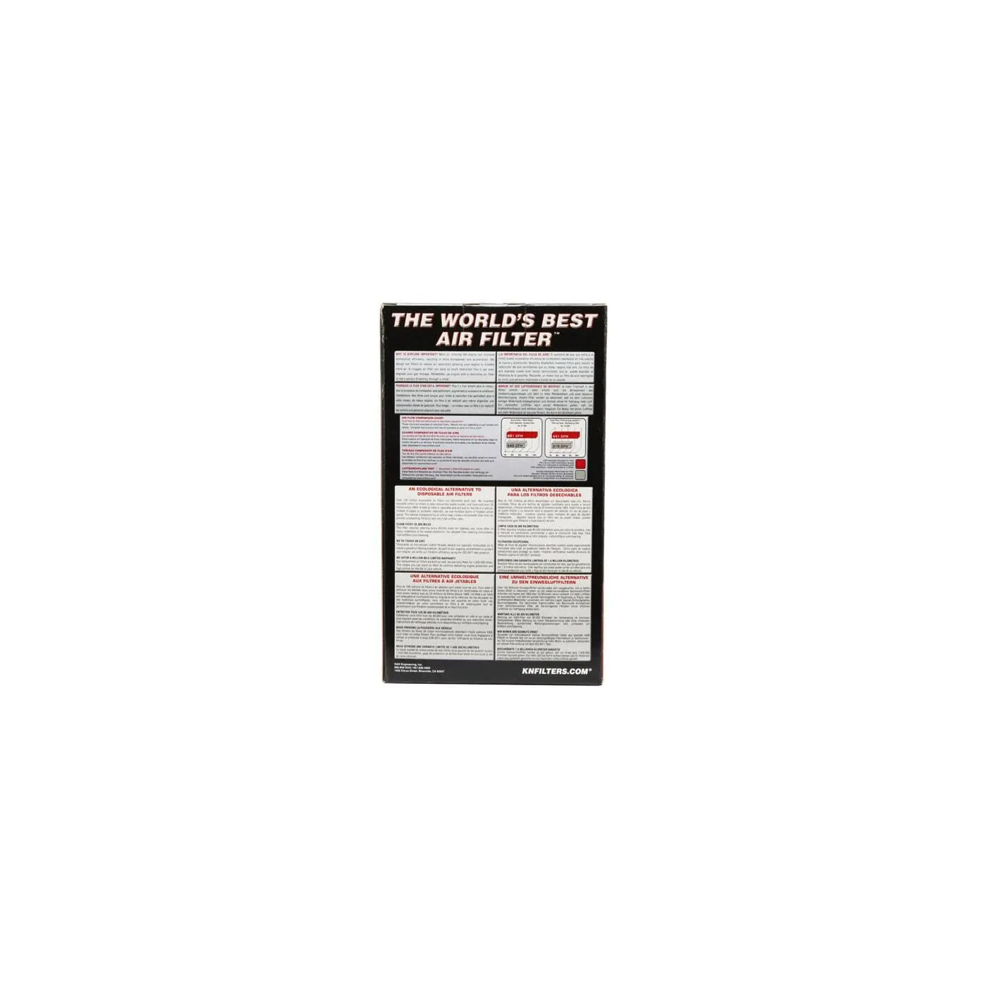 K&N® washable, reusable High-Flow Air Filters™ feature a state-of-the-art design of layered, oiled cotton media engineered to improve airflow and capture contaminants, and are designed to provide an increase in horsepower. Each performance air filter is reusable, engineered to last for the entire lifespan of your vehicle, and backed by K&N’s 10-Year/Million Mile Limited Warranty. K&N drop-in replacement filters are designed to install easily into your factory air box. Upgrade today and start enjoying superior airflow and superior performance from K&N’s most popular product!