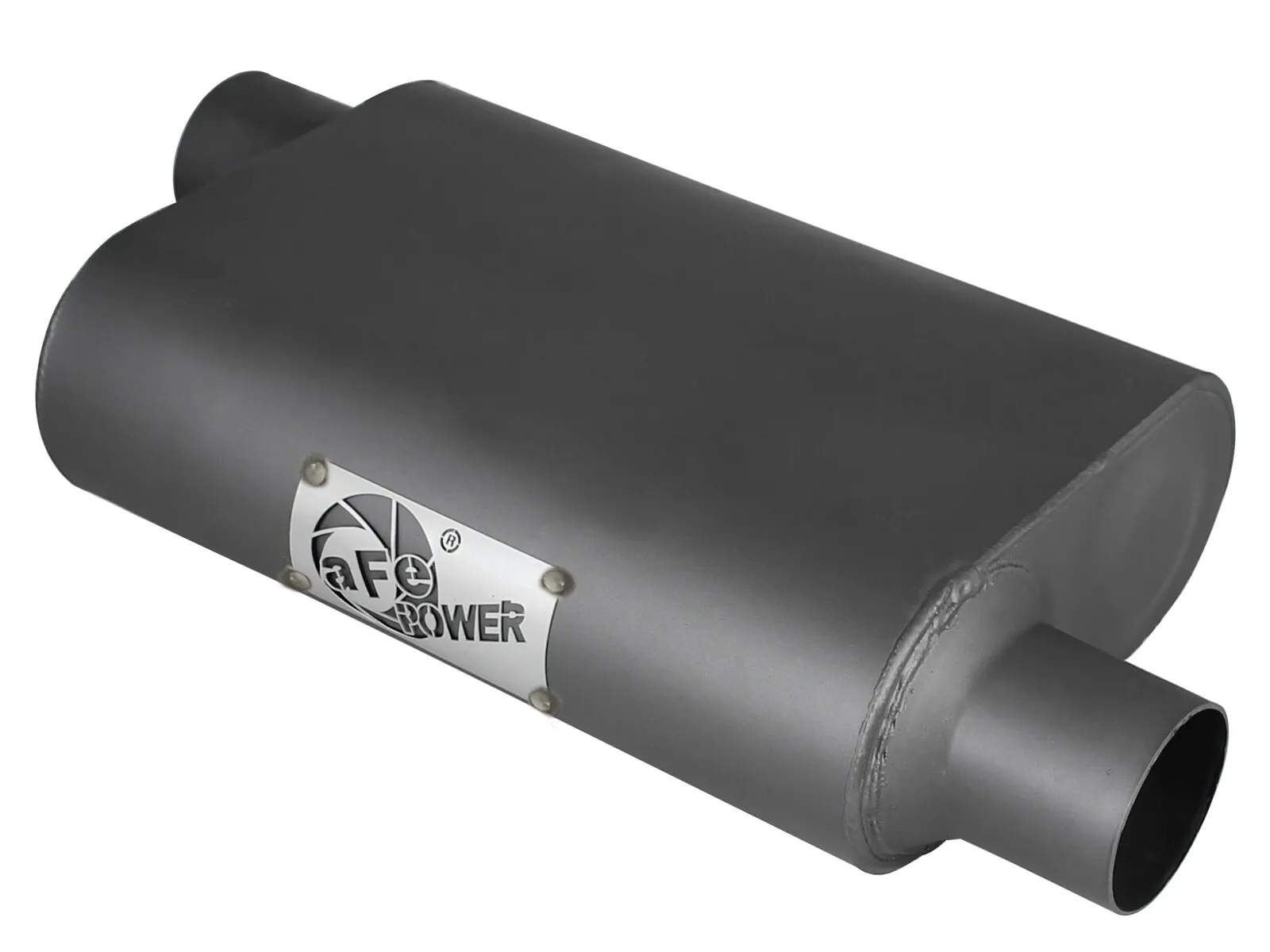 Wake up your stock exhaust or build your own custom exhaust with aFe POWER’s high flow, aluminized steel, universal fit Scorpion muffler. Designed to provide a deep, throaty, powerful sound on acceleration yet maintain a smooth sound at idle, this muffler is made of aluminized steel and uses a baffled core design to improve performance and sound. It's finished with a corrosion resistant high temp metallic black powder-coat for long lasting good looks.