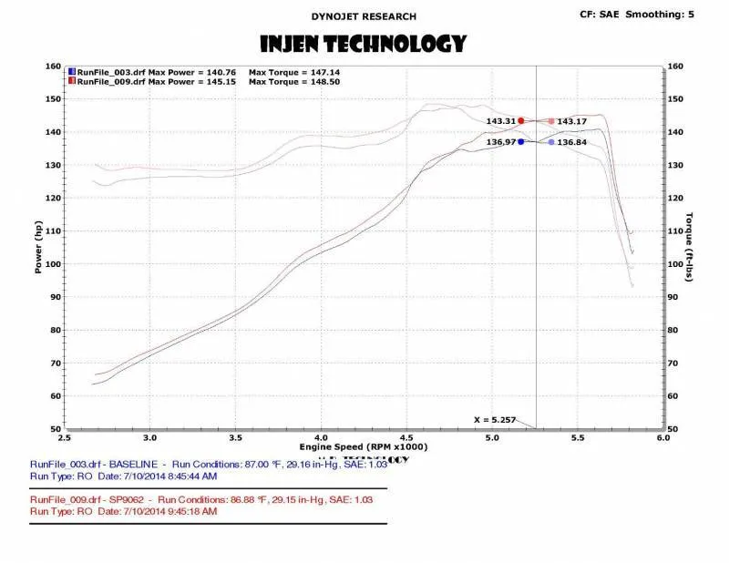 The soul of this intake is found within 6061-T6 aluminum air intake tube that provides a smooth uninterrupted path for highly efficient airflow. Our engineers have painstakingly designed the intake to provide the highest levels of safe power, along with clean aesthetics that will impress every time you open your hood. In addition to the impressive power increase, the Injen team has ensured that a safe Air fuel (A/F) ratio has been maintained throughout the power band.