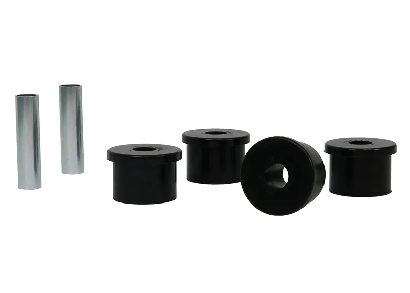 A critical service item for any leaf sprung vehicle. High kilometres and heavy load carrying causes excessive wear on rubber bushings. Whiteline's signature black bushings are made tough and offer outstanding abrasion resistance, high load bearing capability (4WD's, utes and towing), flexibility, increased tensile strength and chemical resistance to oil, grease, ozone and weathering.