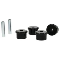 A critical service item for any leaf sprung vehicle. High kilometres and heavy load carrying causes excessive wear on rubber bushings. Whiteline's signature black bushings are made tough and offer outstanding abrasion resistance, high load bearing capability (4WD's, utes and towing), flexibility, increased tensile strength and chemical resistance to oil, grease, ozone and weathering.