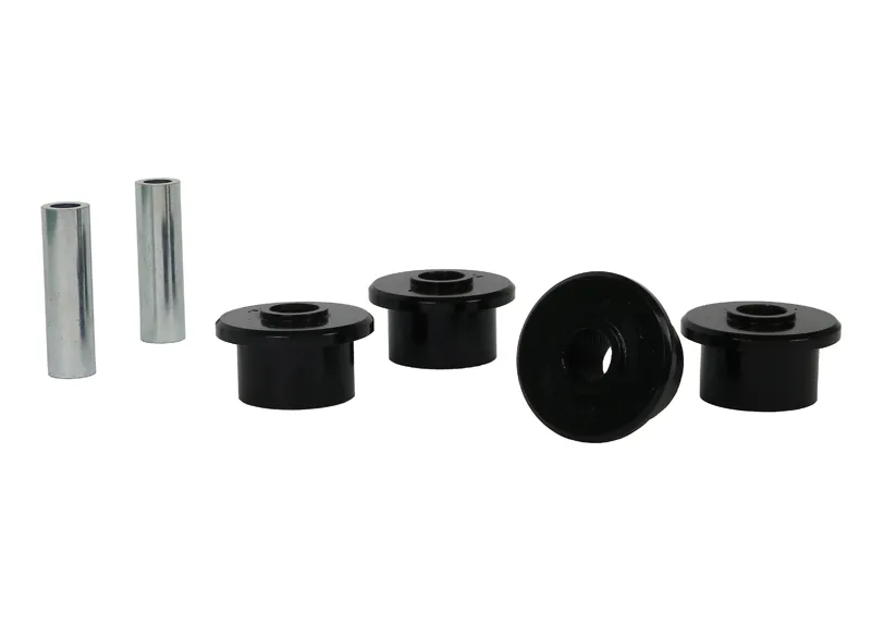 A critical service item for any leaf sprung vehicle. High kilometres and heavy load carrying causes excessive wear on rubber bushings. Whiteline's signature black bushings are made tough and offer outstanding abrasion resistance, high load bearing capability (4WD's, utes and towing), flexibility, increased tensile strength and chemical resistance to oil, grease, ozone and weathering.