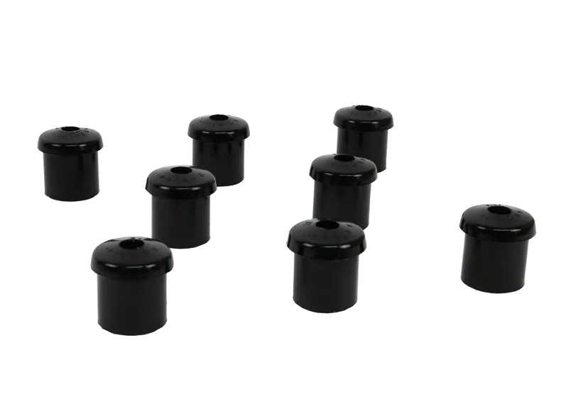 A critical service item for any leaf sprung vehicle. High kilometres and heavy load carrying causes excessive wear on rubber bushings. Whiteline's signature black bushings are made tough and offer outstanding abrasion resistance, high load bearing capability (4WD's, utes and towing), flexibility, increased tensile strength and chemical resistance to oil, grease, ozone and weathering.