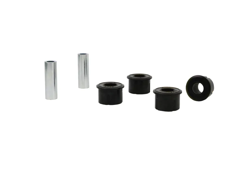A critical service item for any leaf sprung vehicle. High kilometres and heavy load carrying causes excessive wear on rubber bushings. Whiteline's signature black bushings are made tough and offer outstanding abrasion resistance, high load bearing capability (4WD's, utes and towing), flexibility, increased tensile strength and chemical resistance to oil, grease, ozone and weathering.