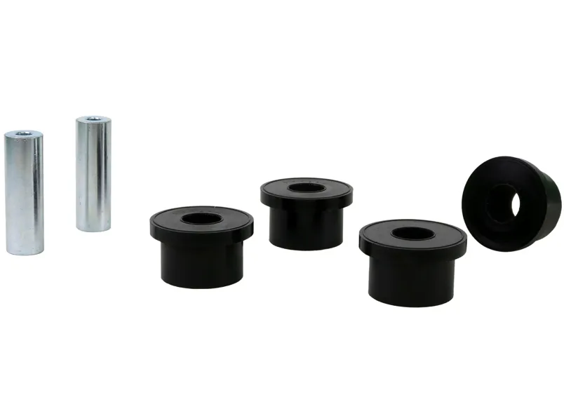 A critical service item for any leaf sprung vehicle. High kilometres and heavy load carrying causes excessive wear on rubber bushings. Whiteline's signature black bushings are made tough and offer outstanding abrasion resistance, high load bearing capability (4WD's, utes and towing), flexibility, increased tensile strength and chemical resistance to oil, grease, ozone and weathering.