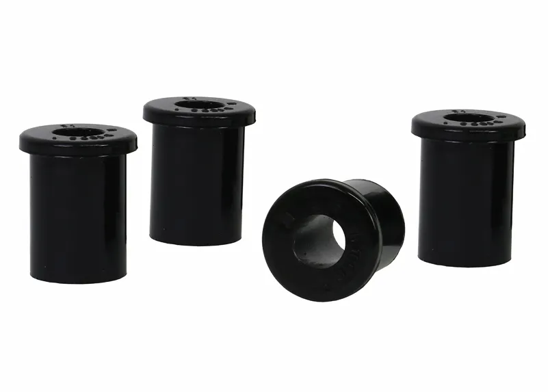 A critical service item for any leaf sprung vehicle. High kilometres and heavy load carrying causes excessive wear on rubber bushings. Whiteline's signature black bushings are made tough and offer outstanding abrasion resistance, high load bearing capability (4WD's, utes and towing), flexibility, increased tensile strength and chemical resistance to oil, grease, ozone and weathering.