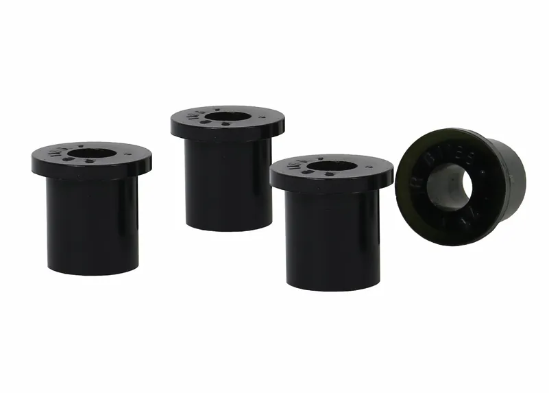 A critical service item for any leaf sprung vehicle. High kilometres and heavy load carrying causes excessive wear on rubber bushings. Whiteline's signature black bushings are made tough and offer outstanding abrasion resistance, high load bearing capability (4WD's, utes and towing), flexibility, increased tensile strength and chemical resistance to oil, grease, ozone and weathering.